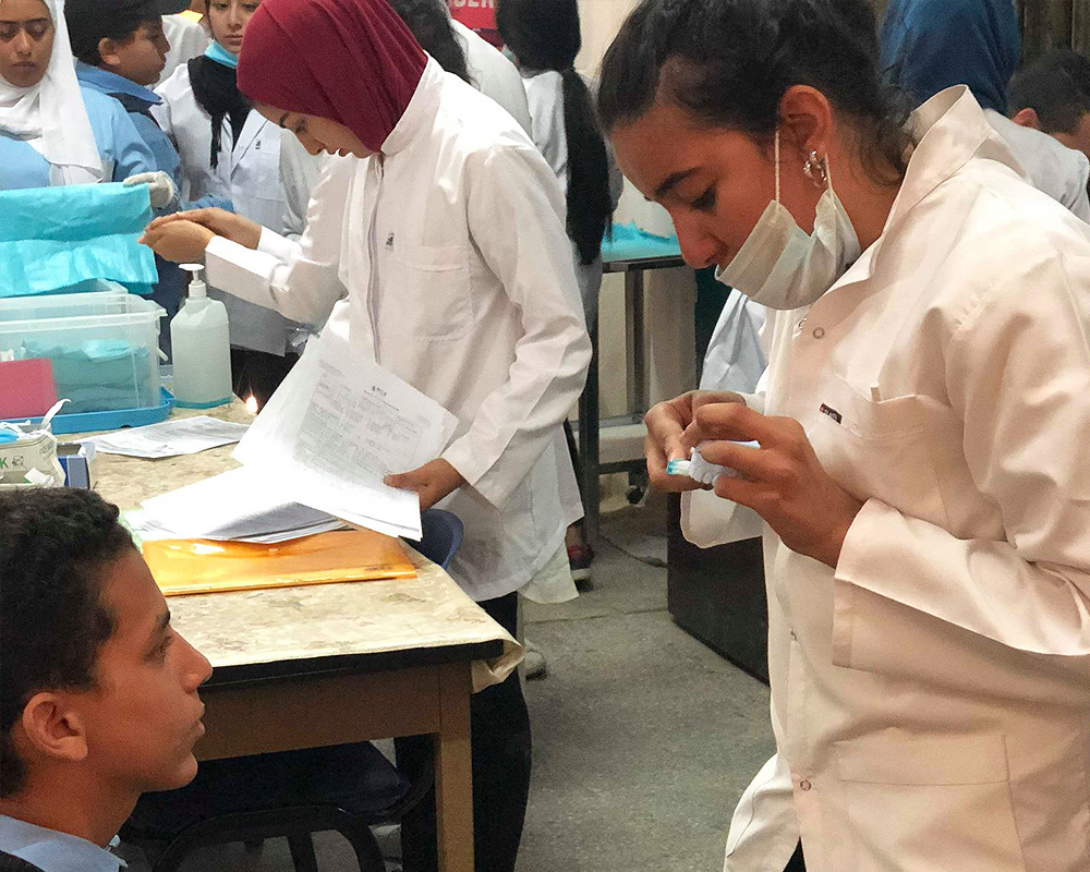 On Thursday 12th of April 2018, MIU Community Service and Environmental Committee organized a field trip to Omar Ibn Abdel Aziz School for boys. A group of staff members, students and nurses from the Faculty of Oral & Dental Medicine joined the trip.