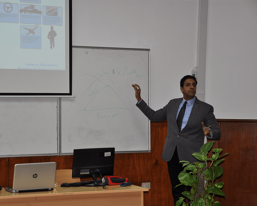 To enhance the practical experience of students, the Department of Management at the Faculty of Business Administration and International Trade, launched its first International Excellence Professional Certificate IEPC which is accredited from IPE / PPA France. The program consists of 8 modules (16 workshops). The first module was conducted on 8th and 9th October 2018. The students acquired the practical approach to analyze the market, to identify the appropriate marketing strategies, to design the appropriate marketing mix and to attain the vital knowledge for implementing the effective strategic marketing solutions.
