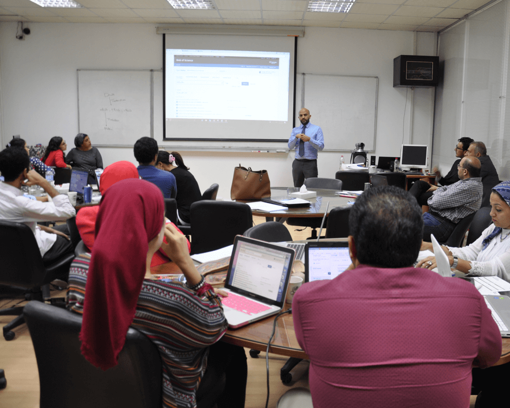 On Wednesday the 18th of July, 2018, the University Community Service and Environmental Affairs Committee conducted a workshop in collaboration with the Egyptian Knowledge Bank (EKB) and Clarivate Analytics.