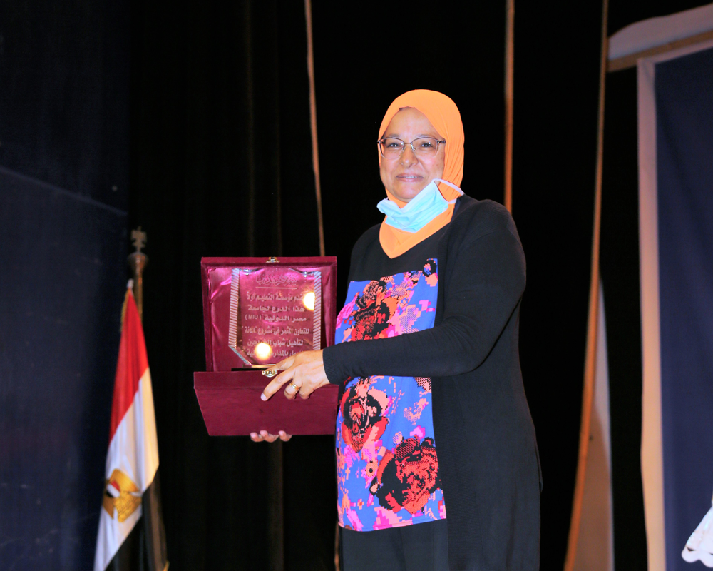 Associate Professor Maha Fathi, Vice Dean of the Faculty of Al-Alsun and Mass Communication for Academic & Student Affairs, received the Shield of Honor on behalf of MIU.