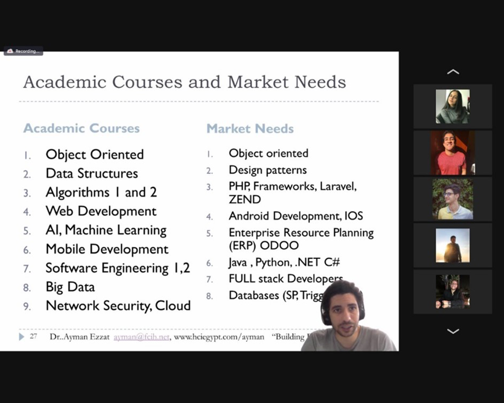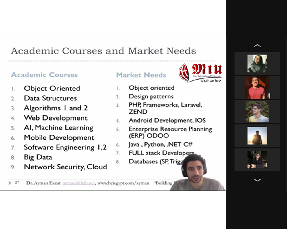 Faculty of Computer Science was pleased to host a webinar titled “CV Writing Session” on Tuesday, June 22nd, 2021 for MIU Computer Science senior students. The webinar was conducted via Zoom by Eng. Tamer Khalil (Senior web developer at Nations Photo Lab, US – MIU CSC 2010 Graduate)
