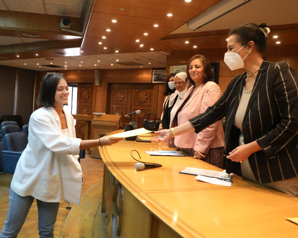 Dr. Maha Fathy, Vice Dean for Education and Students’ Affairs and Chair of Al Alsun Department, Dr. Nagwa El Gazzar, Vice Dean for Graduate Studies and Research, Dr. Sama Dawood, Associate Professor of Translation and Dr. Hanan Sharaf, Assistant Professor of Linguistics, attended the signing ceremony of the MOU, together with Dr. Hala Murad, Director of Training at MENA. After signing the MOU, the Faculty delegation shared in the distribution of certificates to MIU students who successfully completed training in legal translation and translation for international organizations.
