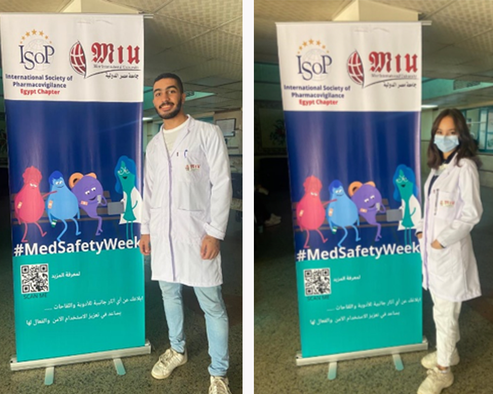 In the context of engaging the MIU pharmacy students in field activities related to pharmacovigilance and in an attempt to emphasize the importance of the inter-professional collaboration with Dentistry students who represent another sector of the health care profession, the faculty of Pharmacy Development and Training Committee, in collaboration with the International society of pharmacovigilance (ISOP)- Egypt Chapter, participated in the annual international campaign for medication safety entitled “Med Safety Week” .