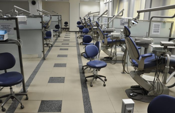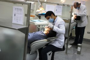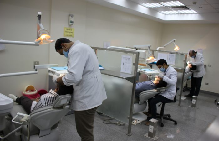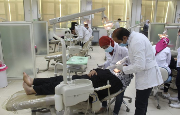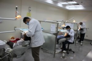 MIU DCC Implantology Center is one of the most unique centers in the DCC. It provides a well-equipped and organized clinic that consists of 8 dental units, divided into compartments with all the facilities a dental student would need to perform implant surgeries under local anesthesia. Postgraduate students and Continuous Education participants, get a chance to observe and perform all types of implant surgeries in a hygienic environment set especially to offer outstanding dental treatment to the patient. Students are supervised to follow infection control rules, and are taught to perform all different types of minor surgeries in this area of the clinics. A monitor is available at each of these units allowing students to plan the patient’s treatment via CBCT.